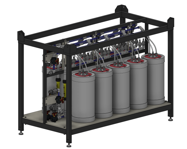 The DS20-20 module system can be equipped with up to 10 WD20 series Membrane Spiral Modules.