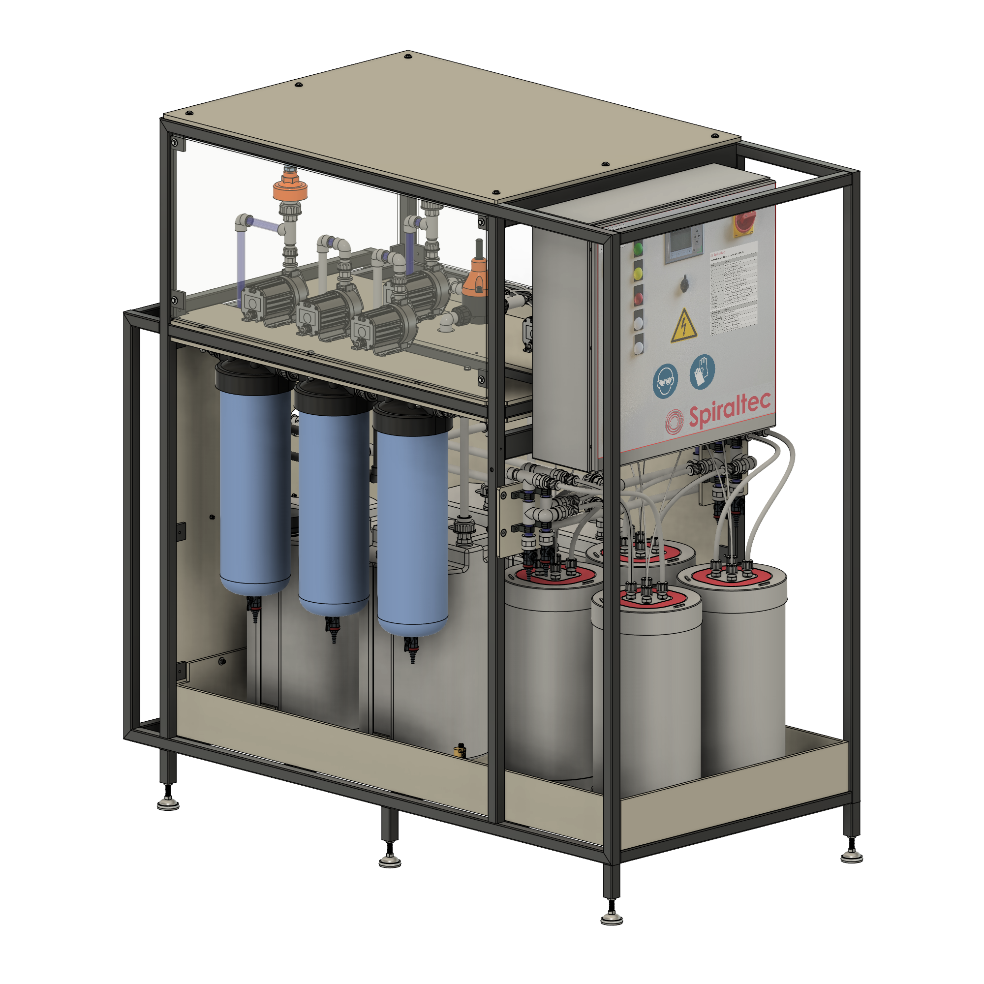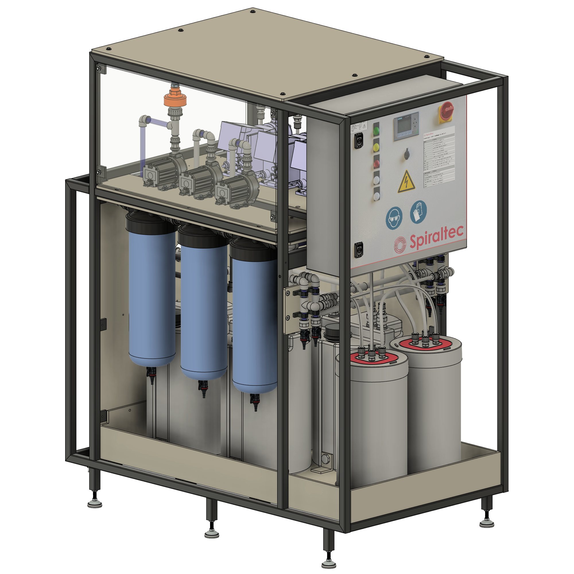 - Fully automatic compact system for small applications. It can be equipped with any Membrane Spiral Module.