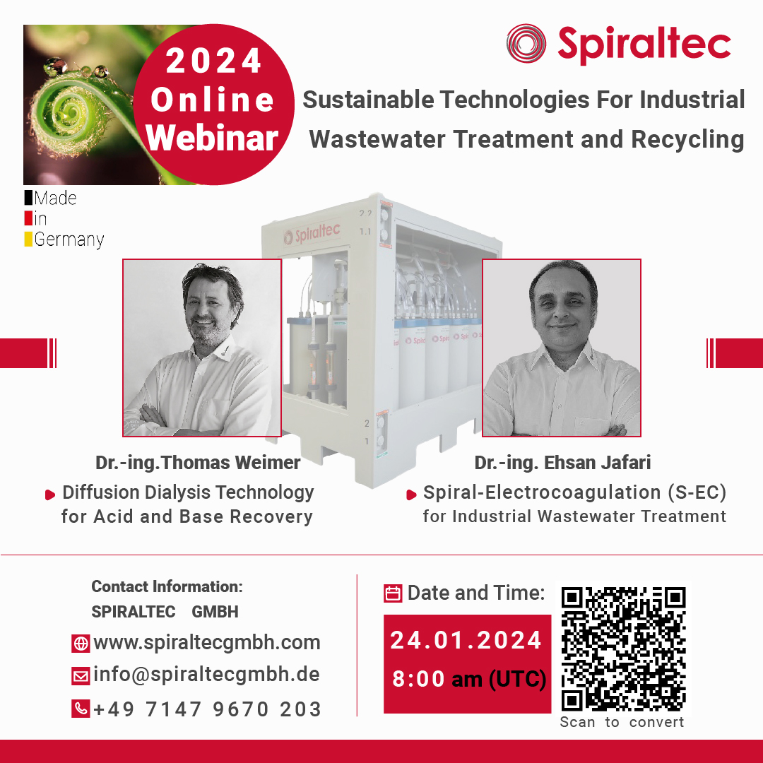 We are excited to share our recently recorded international webinar, hosted by SPIRALTEC GMBH, a pioneer in industrial wastewater treatment and recycling technologies. Dive into the latest advancements and solutions we offer by accessing our webinar now.
